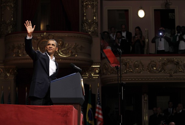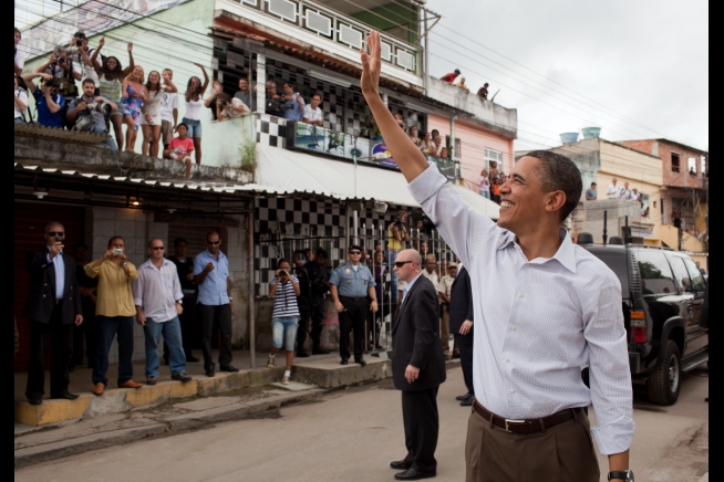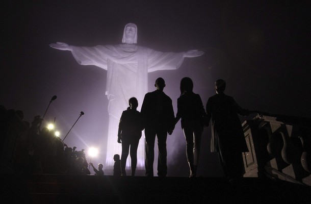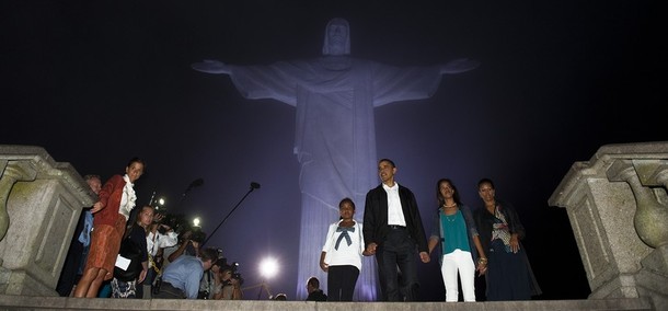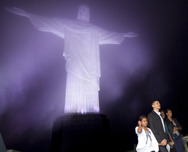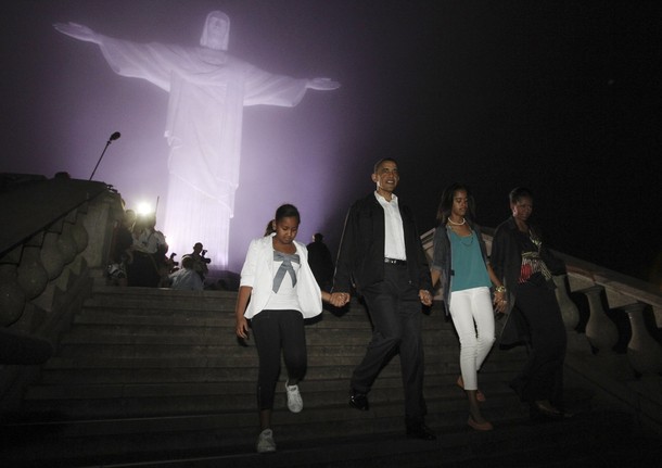 President Barack Obama, first lady Michelle Obama and their daughters Sasha and Malia tour the Christ the Redeemer Statue on Corcovado in Rio de Janeiro, March 20