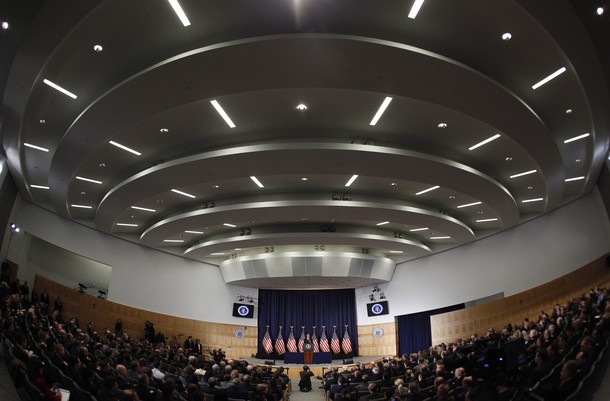 President Barack Obama speaks about Libya at the National Defense University in Washington, March 28