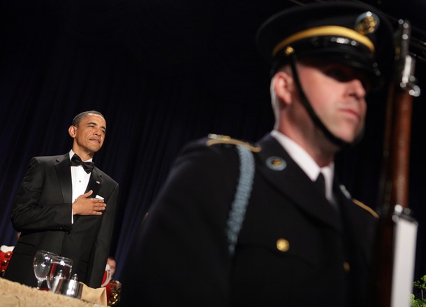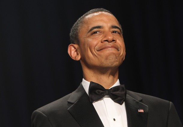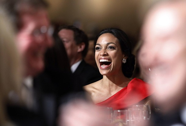 Actress Rosario Dawson laughs as President Obama delivers remarks at the annual White House Correspondents Dinner