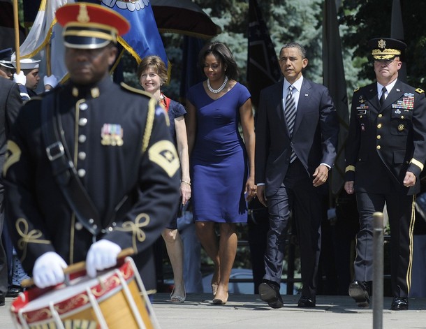 President Obama lays a wreath at the Tomb of the Unknown Soldier at the Arlington National Cemetery, May 30