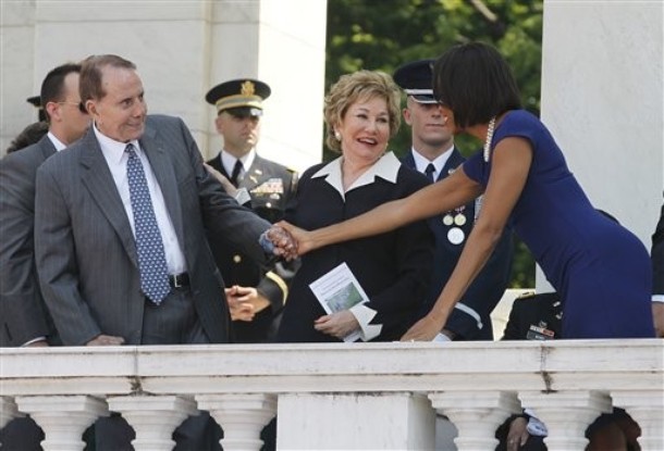 First lady Michelle Obama greets Bob and Elizabeth Dole