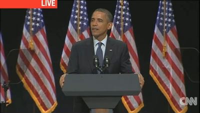 President Obama addresses a crowd at the Adrienne Arsht Center for the Performing Arts in Miami