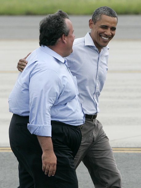 President Obama with New Jersey Governor Chris Christie as he prepares to depart Paterson, New Jersey