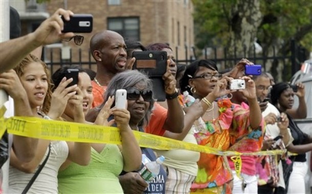 People cheer as President Obama’s motorcade travels through Presidential Boulevard in Paterson, N.J.