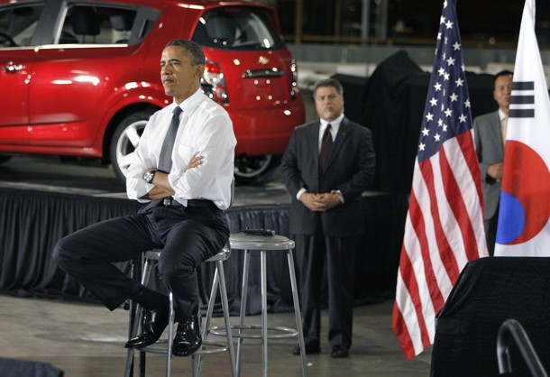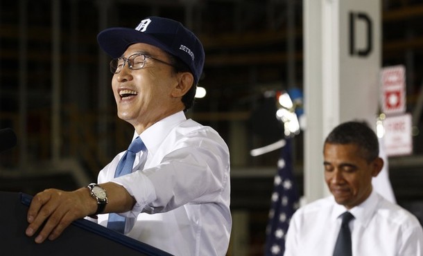 President Obama and South Korean President Lee Myung-bak at General Motors’ Orion Assembly Plant in Lake Orion, Michigan