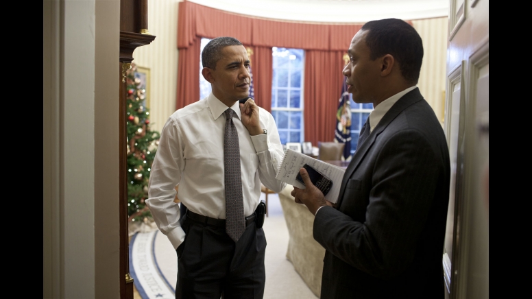 President Barack Obama talks with Rob Nabors, Assistant to the President for Legislative Affairs, in the Oval Office, Dec. 22, 2011. Nabors informed President Obama that a bipartisan agreement was reached to extend the payroll tax cut. (Official White House Photo by Pete Souza)