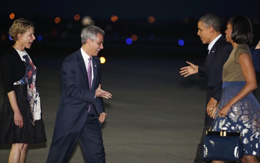 …. greeted by Chicago Mayor Rahm Emanuel and his wife Amy Rule