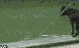 Eh, I meant the smart dog at the pool, not the eejit who ran in to the hedge!