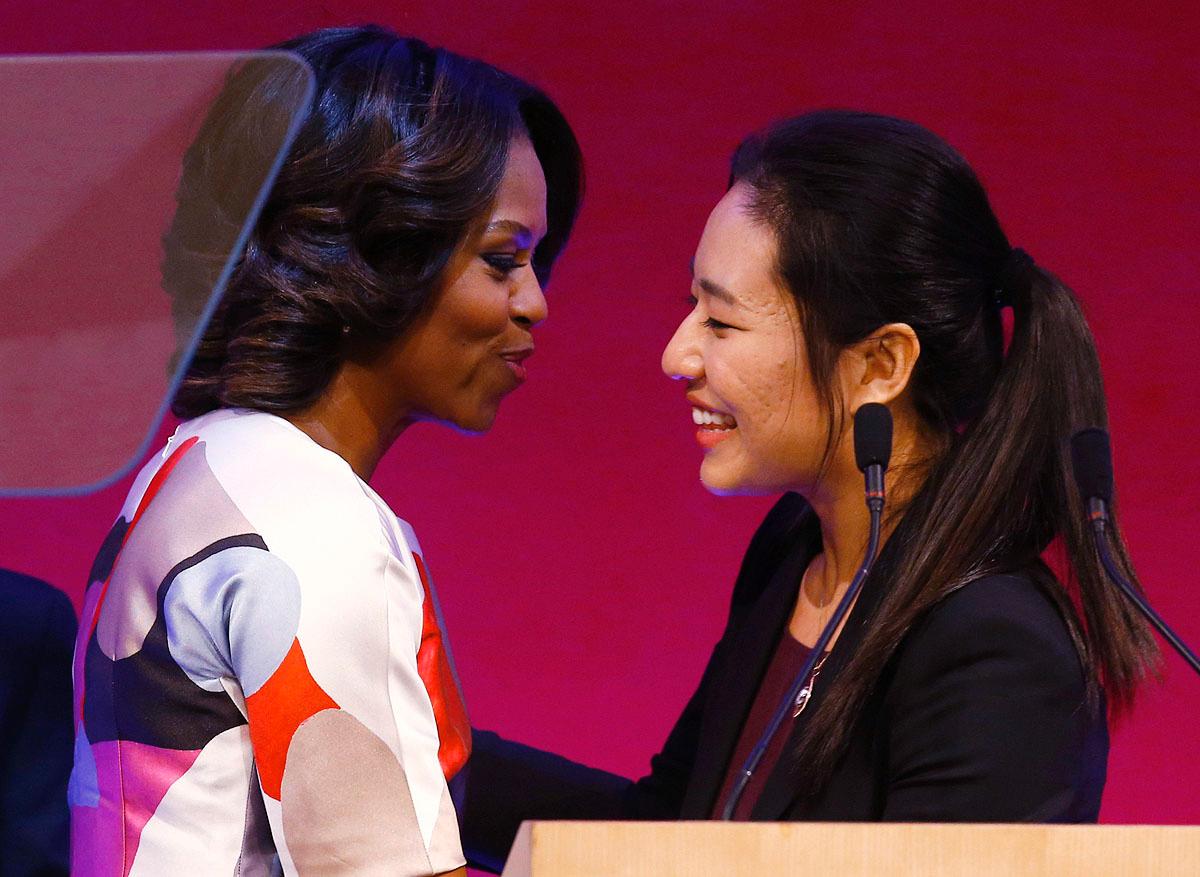 Michelle Obama tours Beijing’s Summer Palace, the garden retreat of the Chinese emperors, where she met with middle-school students from Chicago