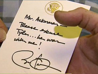 :-) What you need is a Presidential excuse note - can you photoshop this one?