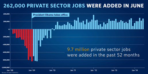 The terrific June jobs report may be the signal we’ve been waiting for that we’re finally turning the psychic corner. The overall jobs number was great at 288,000, and the unemployment rate was down to 6.1 percent. But the most important number was that the employment-to-population ratio, which many economists think of as the truest measure of the jobs market, was up a bit to 59 percent, a high for the recovery, indicating that maybe more people are finally out looking for work than staying home.