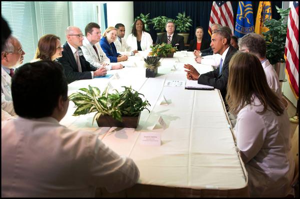 President Obama meets with Emory University doctors and healthcare professionals at the CDC. #Ebola