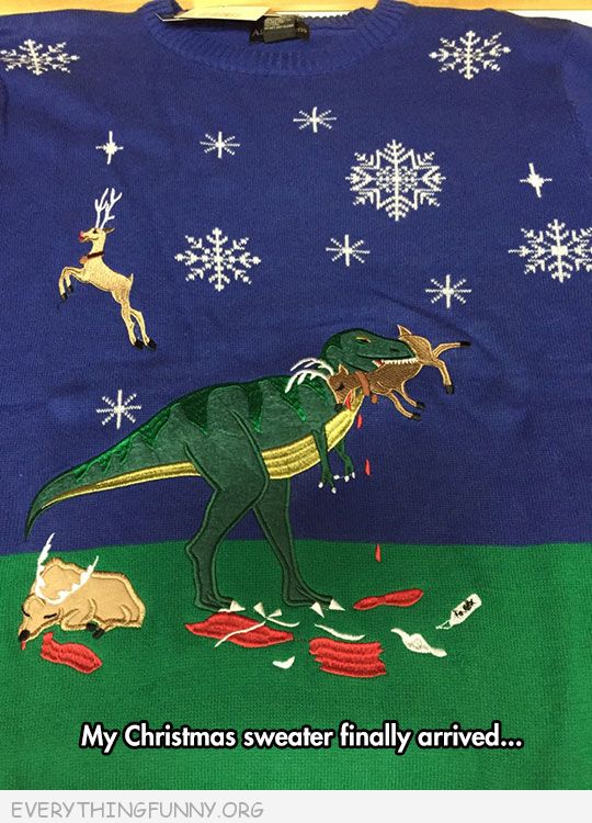 I repeat: We can discuss exchanging your dinosaur-murder-scene sweater for Ireesh egg nog ONLY when my gift arrives.