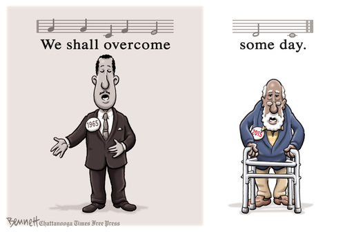Eric, I totally agree with you that the racist psyche has been in crisis since the election of PBO and they have pulled out all the stops they can think of-literally debased and took possession of a whole political party-to try to reassert their sense of God-given superiority. But what the 2008 and 2012 elections showed is that we can fight back and win when we work together. When we surrender our strength, as we did in 2010 and 2014, we lose. So our task, as monumental as it seems, is to keep hope alive, keep fighting, keep registering voters, keep instilling a sense of what PBO and MLK called the ‘fierce urgency of now.’ The push is on now as we come up to another presidential year to do everything possible to discourage, disenfranchise and demean. We’ve showed before that we can fight against that and win and we have to do it again and again and again.