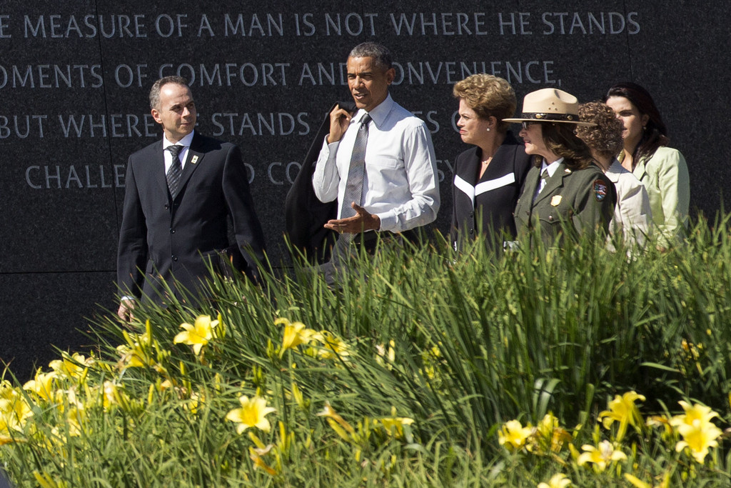 President Barack Obama (2-L) and President of Brazil Dilma Rousseff (2-R) visit the Martin Luther King Jr. Memorial