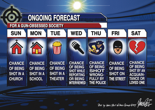This is so sadly true, AMK. I don’t recognize what has become of this country. The obsession with guns is nothing short of madness, as is the hysteria about an overweight, fuzzy thinking bully.