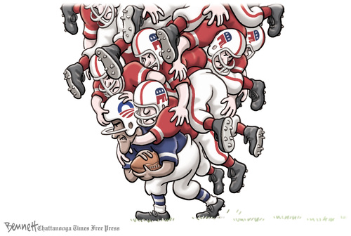 Why is it that the smartest opinions show up in political cartoons? Cartoonist have a few strokes to deliver a message and often hit it right on the nose. Pundits have columns of words or hours of airtime and continue to spew drivel.
