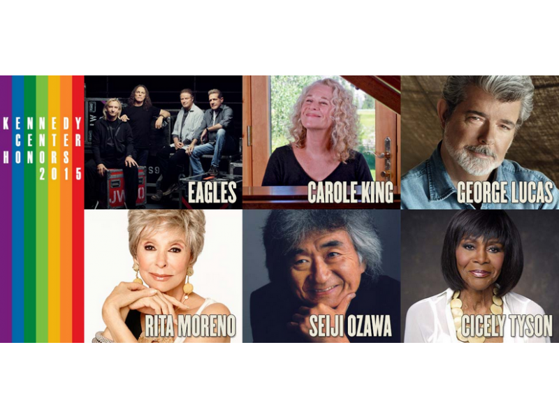 By the way, on December 6*, 2015, the Kennedy Center will celebrate the lifetime achievements of American rock band the Eagles, singer-songwriter Carole King, filmmaker George Lucas, actress and singer Rita Moreno, conductor Seiji Ozawa, and actress and Broadway star Cicely Tyson. CBS will broadcast the Honors gala on December 29, 2015.
