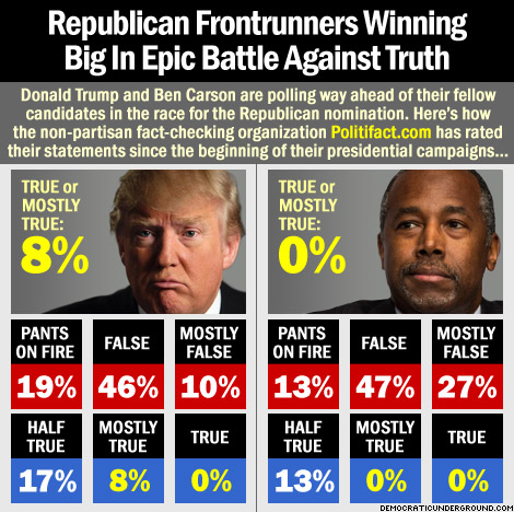 Politifact was on PBS Newshour last night. When asked how the candidates respond, she said they either ignore them or doubledown on their lies.