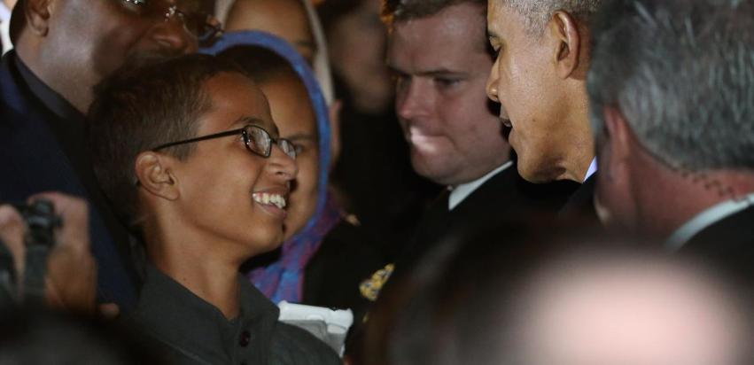 (9) President Obama talks with 14-year-old Ahmed ‘Clock Boy’ Mohamed during Astronomy Night on the South Lawn after inviting him to the event at the White House. Mohamed was handcuffed and questioned by police when he brought a homemade clock to class at MacArthur High School in Irving, TX, and officials mistook it for a bomb (Photo by Chip Somodevilla/Getty)