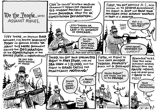 Obama might ask trick questions like, “How many guns have I taken?” or “Why would I want your stinky gun?” or “Have you spoken to a doctor about your fantasy that a black man is coming for your phallic symbol?”