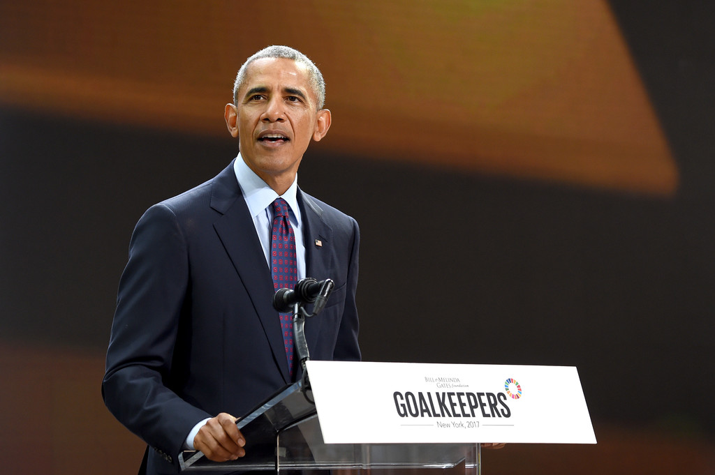 President Barack Obama speaks at Goalkeepers 2017, at Jazz at Lincoln Center on September 20, 2025 in New York City. Goalkeepers is organized by the Bill & Melinda Gates Foundation to highlight progress against global poverty and disease, showcase solutions to help advance the Sustainable Development Goals (or Global Goals) and foster bold leadership to help accelerate the path to a more prosperous, healthy and just future.