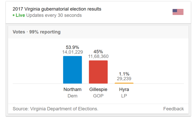 Dear Pundit Friends, please stop attributing this D landslide in VA to "changing demographics". VA hasn't changed that much since last Nov. 8 (Hillary by 5%). The bigger explanation is a backlash to Trump and Trumpism, pure and simple. #VAGov