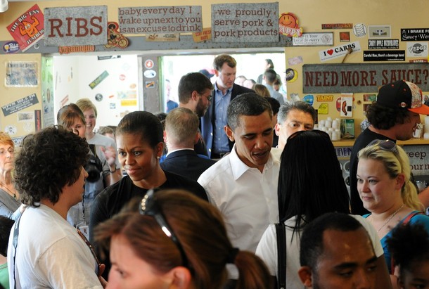 …with Garth Brooks at the White House, April 14, 2010. The President was presented with the 2007 Grammy Award for best spoken word album for his book “The Audacity of Hope”
