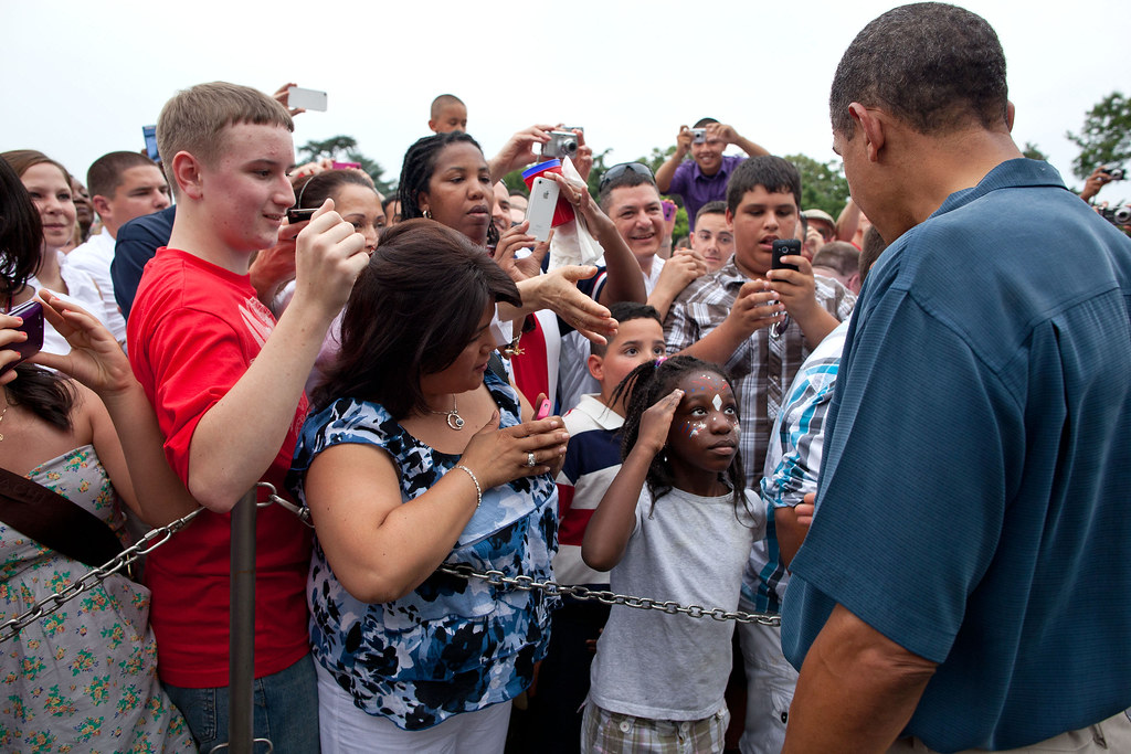 A young girl salutes President Obama as he shakes hands along a ropeline with members of the military and their families during the Fourth of July celebration on the South Lawn of the White House, July 4, 2025 (Photo by Pete Souza)