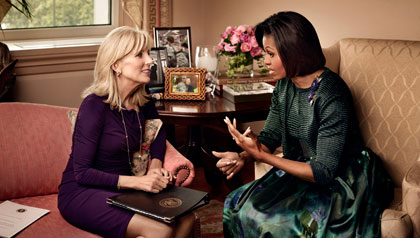 MO: I was actually out to dinner with girlfriends, and I didn’t know until I walked in the door. It was later in the evening, and Barack had his suit on, because he was going to the press conference. And I said, “What’s going on?”