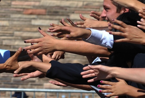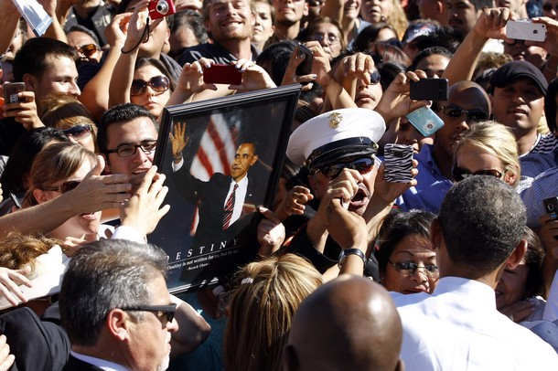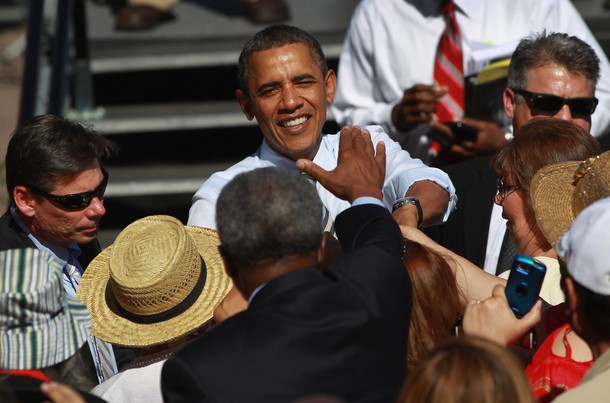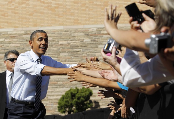 President Barack Obama shakes hands with people gathered at Abraham Lincoln High School in Denver, Colo., Sept. 27. (Official White House Photo by Pete Souza)