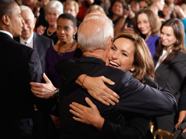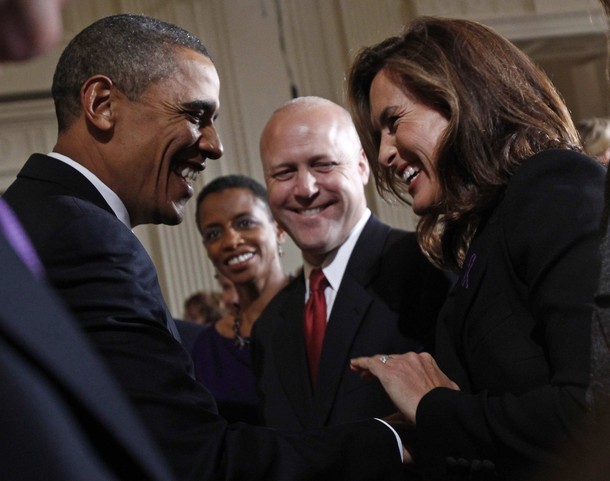 ….with actress Mariska Hargitay and New Orleans Mayor Mitch Landrieu at an event marking Domestic Violence Awareness Month in the East Room at the White House in Washington, October 27