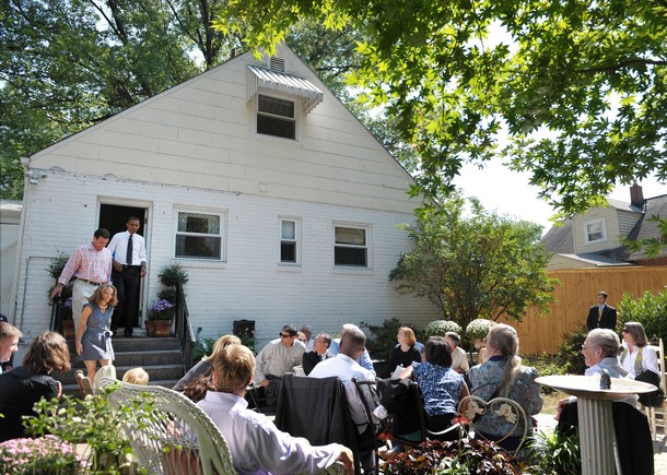 President Barack Obama speaks from Erik and Cynnie Foss’ backyard in Seattle, October 21. The President met with the Foss family at their home before hosting a discussion on women and the economy with families and women small business owners from the area