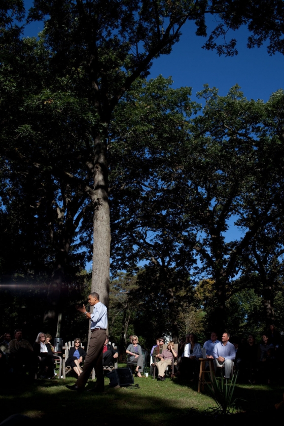 President Obama holds a discussion on ensuring economic stability and opportunity for women in the backyard of the Foss family in Seattle, WA. October 21