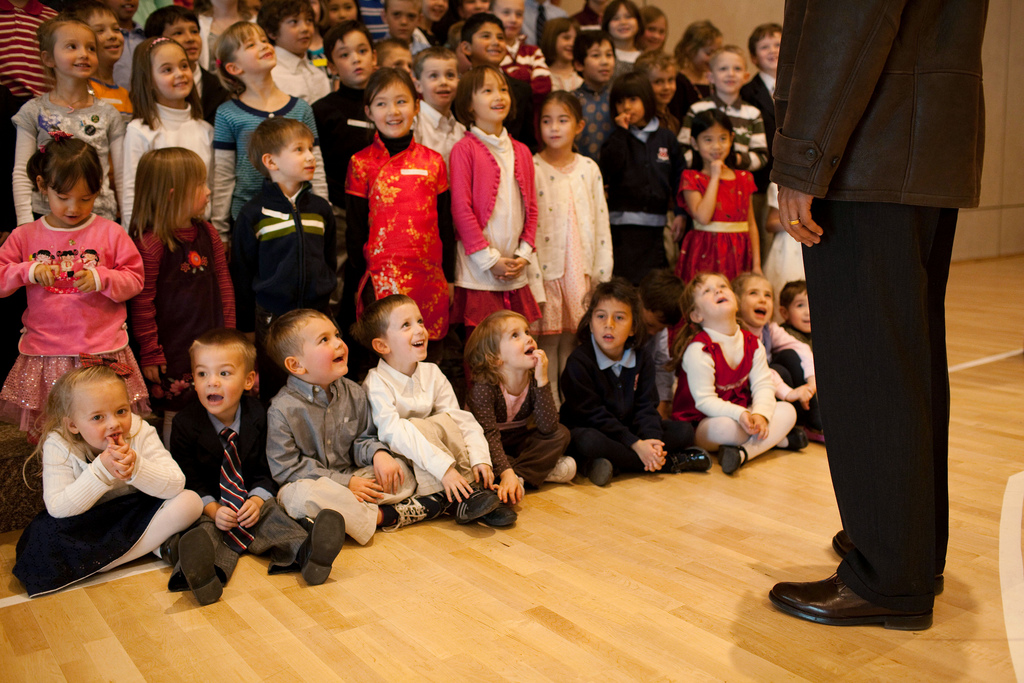 The children of embassy staff greet President Barack Obama at the U.S. Embassy in Beijing, China, Nov. 17, 2009. (Official White House Photo by Pete Souza)