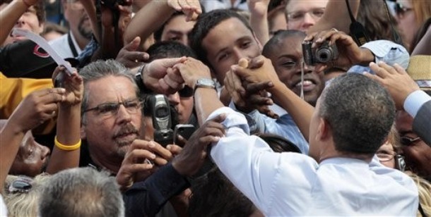 President Barack Obama greets former National Security Adviser Brent Scowcroft