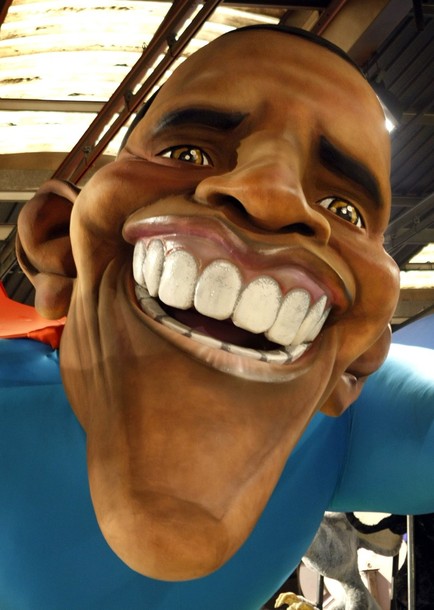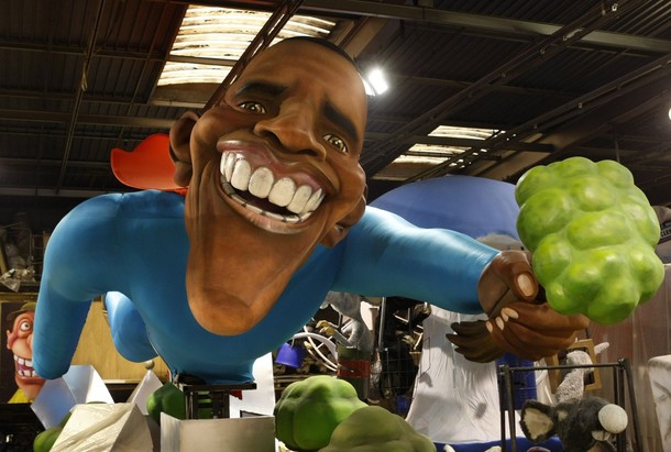 A carnival float depicts US President Barack Obama as Captain America during the traditional parade in Cologne, Germany, Feb. 20