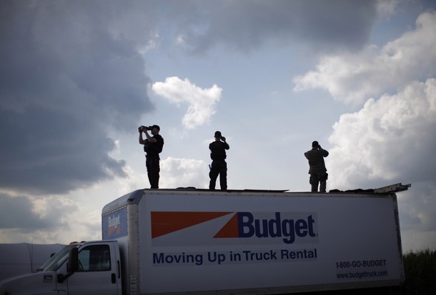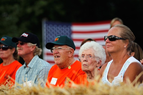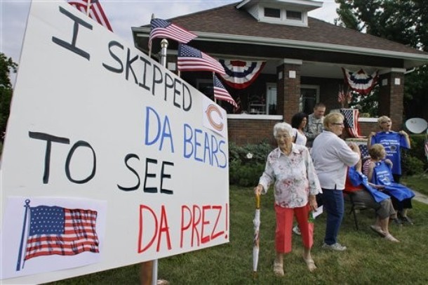 Residents of Atkinson line up on Illinois Route 6 to show support for President Obama