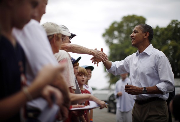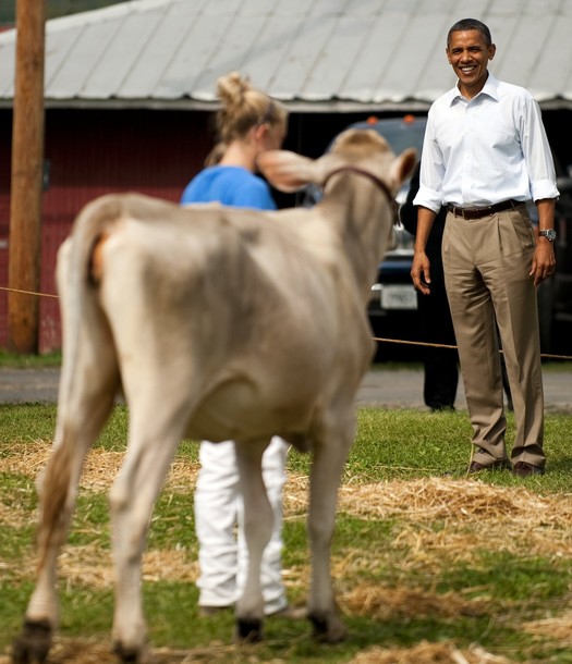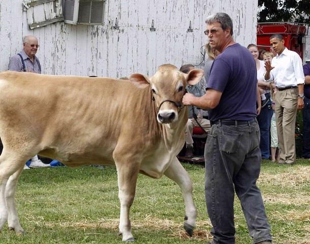 President Obama visits the Whiteside County Fair during livestock judging, Aug. 17, in Morrison, Ill.