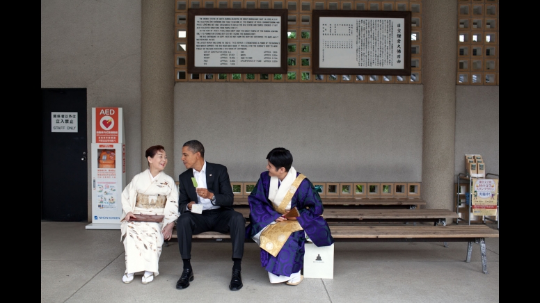 President Barack Obama eats green tea ice cream during his visit to the Great Buddha statue at the Kotoku-in Temple in Kamakura, Japan, Nov. 14, 2010. (Official White House Photo by Pete Souza)