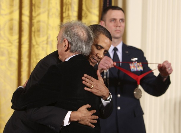 ….. greeting Elie Wiesel in the Oval Office, Dec. 5
