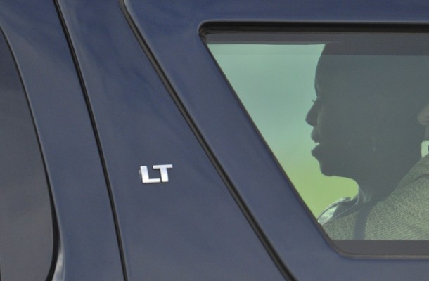 First lady Michelle Obama is driven from Stansted Airport after saying goodbye to her husband President Obama