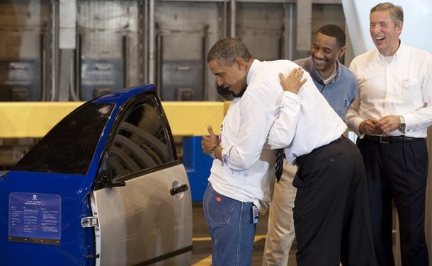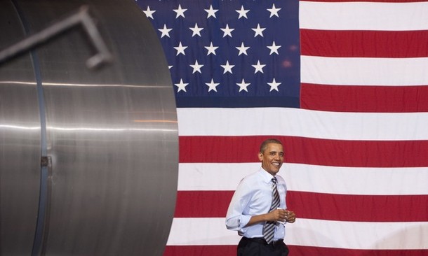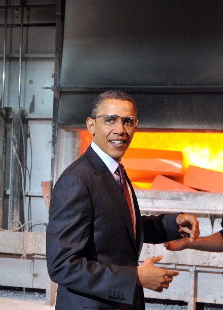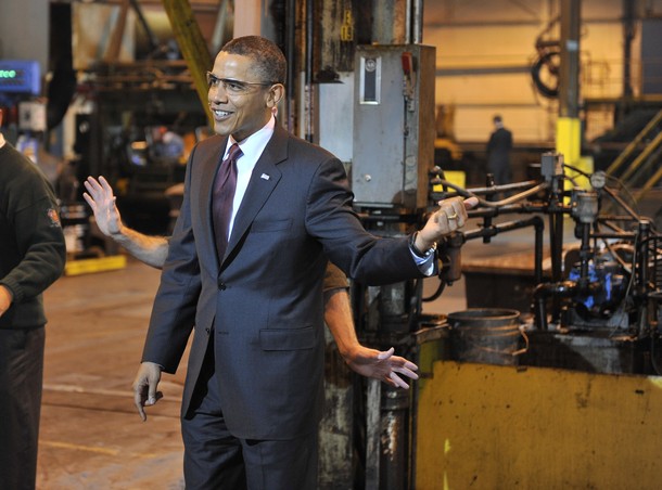 President Obama tours Alcoa Davenport Works Factory prior to speaking on the economy in Bettendorf, Iowa