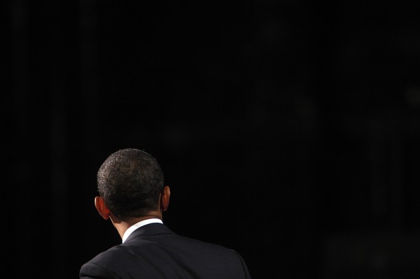 President Obama and First Lady Michelle Obama wait backstage before being introduced at the White House Correspondents’ Association dinner in Washington, D.C., April 30, 2011. Press Lead Advance Brandon Lepow and Trip Director Marvin Nicholson, right, stand with the President and First Lady (Photo by Chuck Kennedy)