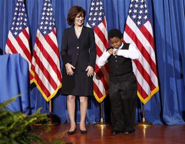 President greets 109-year-old Emma Primas of Houston prior to the Easter Prayer Breakfast (Photo by @PeteSouza) http://t.co/QWE1mjTxW6