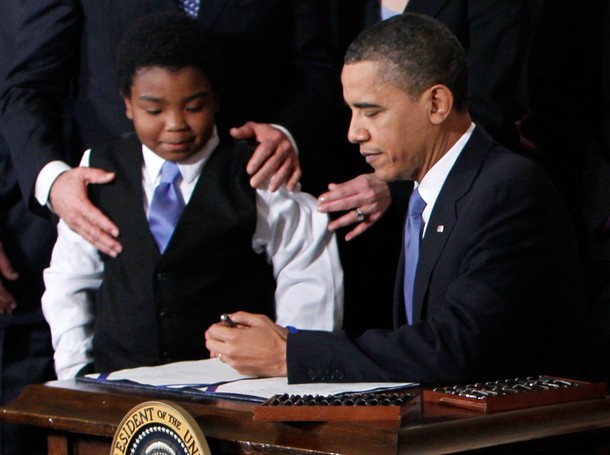 President Barack Obama speaks while participating in a roundtable discussion on the impacts of climate change on public health with Vivek Murthy, U.S. surgeon general, left, Gina McCarthy, administrator of the Environmental Protection Agency (EPA), second from right, and Charlotte Wallace, sustainability coordinator at Anne Arundel Medical Center, third from right, at Howard University