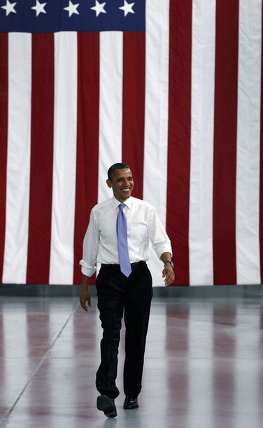 President Barack Obama arrives to speak at Johnson Controls Inc. in Holland, Mich
