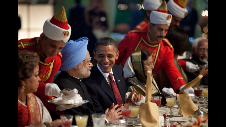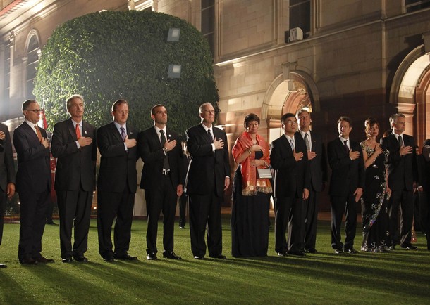 …. the U.S. national anthem is played before a state dinner at Rashtrapati Bhavan in New Delhi