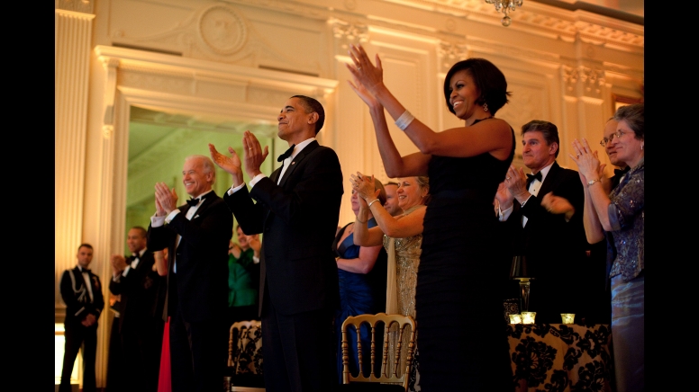 President Barack Obama and First Lady Michelle Obama applaud the performance by Harry Connick Jr. during the Governors Ball in the East Room of the White House, Feb. 21, 2010. (Official White House Photo by Pete Souza)