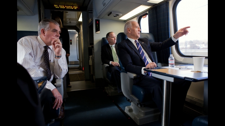 Vice President Joe Biden and Transportation Secretary Ray LaHood walk to a train at Union Station in Washington, Feb. 8, heading to Philadelphia, and an event to tout plans to improve the nation’s infrastructure. Information here